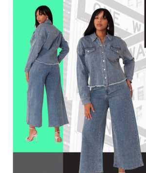 Only the pants are available. Wide leg Bling jeans with